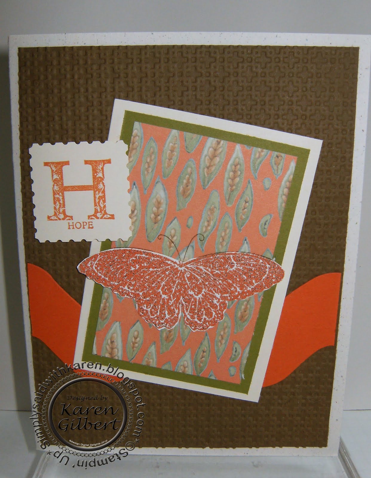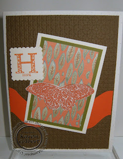 For this card, I tried to make it a little more masculine and still use the butterfly. I accomplished this by using a brown and orange colour palette. Men also need to be comforted and provided with strength and hope as they support someone with cancer or have it themselves.