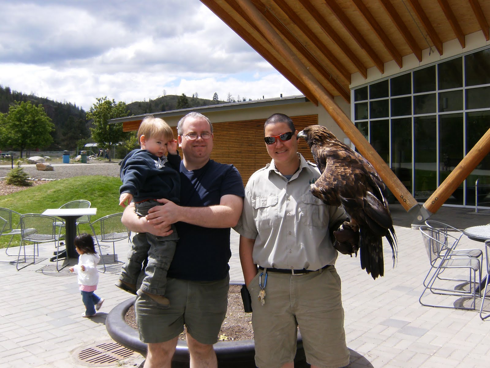 Today was a happy Monday as I spent time with my son and daughter-in-law and of course Sagan. We went out to the Wild Life Park that is one of our local attractions and there were many people out there today as the weather was fairly sunny, not too hot, which meant that alot of the animals were out too. We have grizzlies, brown bears, cougars, birds of prey and many more. The park has been in existence for some time so the exhibits have grown over the years. Here is a picture of Nan getting a kiss while we are riding the train in the park. What is better than a kiss from your grandchildren!!!!